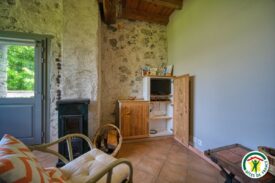 Entouré de verdure et sans vis à vis, le gîte est aménagé à l’étage d’un bâtiment en pierre au dessus de l’ancien  four à pain et à 30 mètres du bâtiment d’habitation principal.